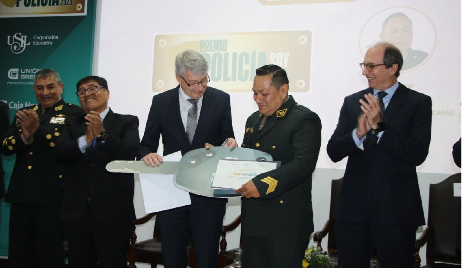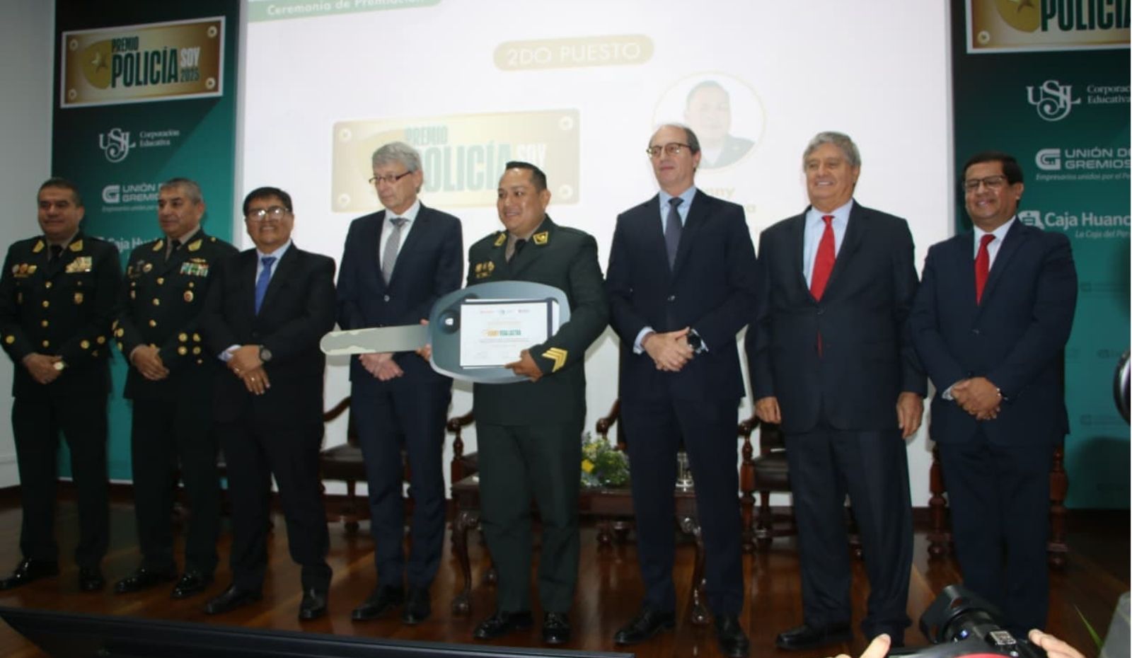El Premio Nacional “Policía Soy”, impulsado por la Corporación Educativa USIL, Caja Huancayo y la Unión de Gremios del Perú, reconoció este año a 16 finalistas entre 238 postulaciones. En la primera edición, la suboficial de segunda Verónica Gargate Coaguila obtuvo el primer lugar por rescatar a un adulto mayor atrapado en un incendio en Barrios Altos, Lima, siendo premiada con un departamento de estreno en la capital, cortesía de Caja Huancayo.