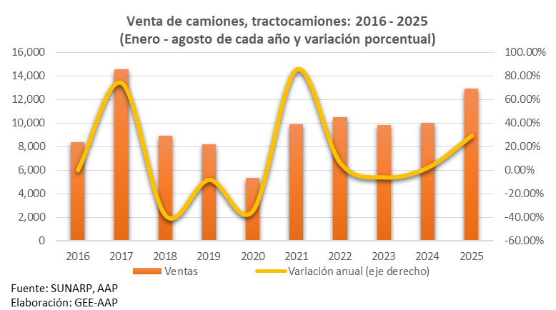 “El entorno financiero más favorable para las empresas, con mejores condiciones de crédito y un tipo de cambio más competitivo, ha incentivado la renovación y ampliación de flotas, consolidando así la tendencia de crecimiento en este rubro”, puntualizó el economista de la AAP.