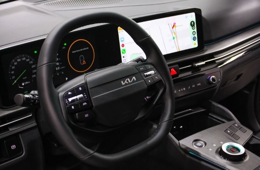 En el interior del KIA Sportage 2026 los cambios son más sutiles y se limitan a un nuevo volante en acabado bicolor y calefactado en los acabados más avanzados, las toberas de la ventilación que ocupan una posición más baja o las salidas de aire que reciben nuevo diseño y que se integran en la plancha central del salpicadero. A nivel tecnológico sigue contando con una doble pantalla de 10,25 pulgadas cada una y que se complementa con un Head Up Display de 10 pulgadas.