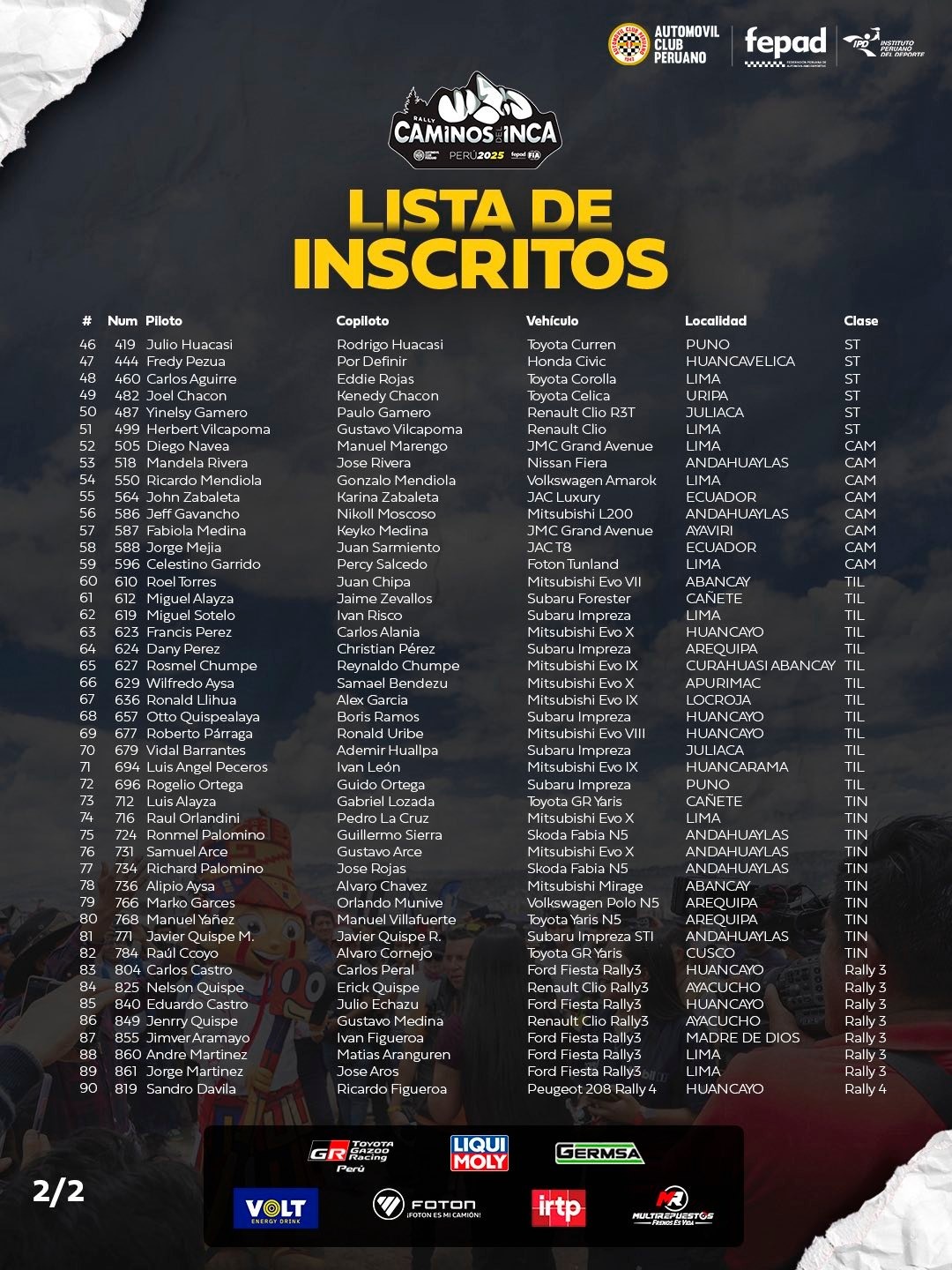 Como antesala oficial del evento, el 8 de octubre, feriado nacional, se celebrará el Súper Prime Chaski Rally, en Chilca, un espectáculo de velocidad que se desarrollará en un circuito de tierra con dos autos compitiendo en paralelo.