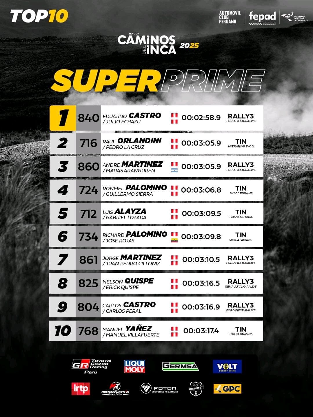 En esta jornada, los cinco mejores tiempos obtuvieron el privilegio de elegir su orden de partida para la primera etapa Lima-Huancayo, una ventaja estratégica que podría resultar decisiva en el desarrollo de la competencia.