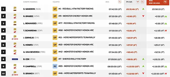 Otra KTM, la de Daniel Sanders, aprovechó la situación para arrebatarle el liderato de la general a Tosha Schareina, reconfigurando la lucha por el título.
