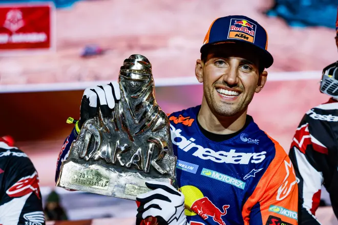 La victoria de Luciano Benavides, se recordará durante mucho tiempo por ser una de las más épicas de los 48 Dakar disputados hasta la fecha. Porque, además de correr mermado por una lesión en la rodilla (con un menisco y un ligamente roto) lo logró in extremis, en la última etapa, y por la menor distancia en la historia de la prueba: sólo dos segundos le separaron del americano Ricky Brabec.