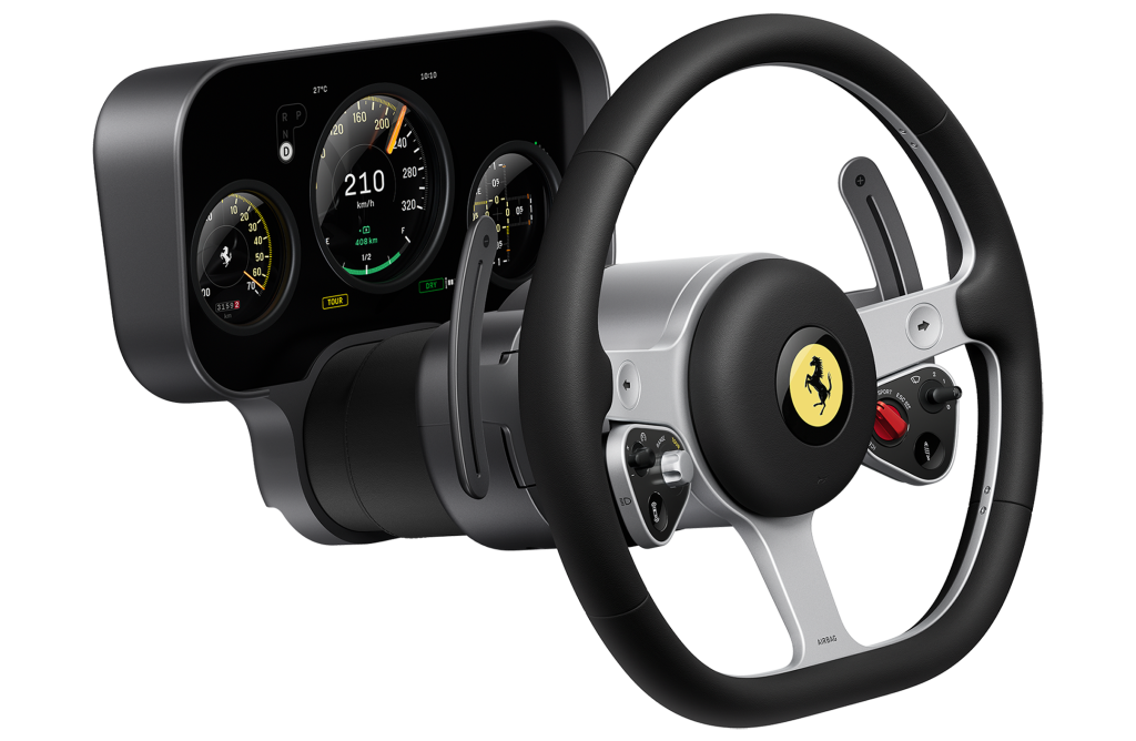 - Volante: Ergonómico con botones hápticos estilo F1 para cambios de modo (e-boost, drift, etc.), sin palancas tradicionales, todo digital.